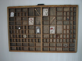 Lokerikko on työhuoneemme seinällä ja keräilen siihen erilaisia pieniä esineitä. Kummipoikani Oliver veisti minulle tuon symppiksen pienen kaarnaveneen juuri tätä lokerikkoani silmällä pitäen. Olisi kiva löytyy lokerikkoon niitä vanhoja kirjapainosysteejä. Mikäs niiden nimi olikaan? Lokerikollakin taisi olla joku virallisempi nimi, joka ei tosin juuri nyt tule mieleen.